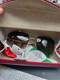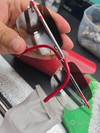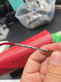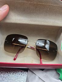 Splendidi occhiali da sole vintage firmati Valentino, autentici e realizzati in Italia (codice modello: 5138/S YB7DA). Dettagli del prodotto: Design: Modello "rimless" (senza montatura) con lenti sfumate sui toni del marrone/nero, estremamente eleganti e leggere. Stato: Ottime condizioni vintage. Le lenti e la struttura sono ben conservate. Caratteristiche: Astine in metallo argento con terminali rosso ciliegia e logo Valentino inciso. Accessori inclusi: Custodia rigida originale Valentino in similpelle rossa e panno in microfibra a tema Italia (Centrostyle). Misure: 58□20 - Lunghezza astina 125. Un pezzo iconico dei primi anni 2000, perfetto per un look retrò chic o per collezionisti del brand. Spedizione rapida e imballaggio accurato.