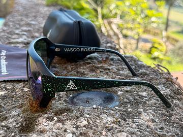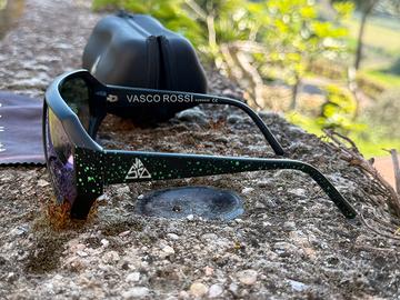 Un occhiale da sole in acciaio forato che ricorda la struttura di una cassa acustica combinato alla plastica, leggero e facile da indossare. Blasco di Vasco Rossi è un Occhiale in nylon. Sono gli occhiali da sole di Vasco Rossi, ispirati a lui e alla sua storia. Nuovi, mai usati, ancora nella custodia originale!