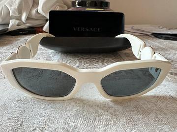 Fantastici occhiali da sole Versace colore bianco e oro, praticamente nuovi, indossati un paio di volte e poi riposti nel cassetto. Le foto parlano da sole. Originali al 100%. Inclusa custodia e pezzuolina ancora sigillata. Perfetti, senza un graffio.