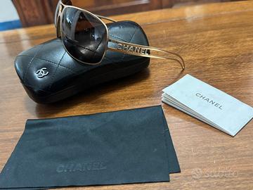 Come da titolo vendo rarissimi occhiali da sole vintage CHANEL, rara maschera avvolgente in oro, da aviatore quadrato, montatura ovale, lente marrone grigio 4150,