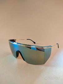 Iconici occhiali da sole vintage firmati Gianni Versace - modello 790 col. 030 in metallo dorato, leggeri e confortevoli con lente specchiata a mascherina in policarbonato e ponte anatomico nero.