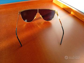 Meravigliosi occhiali da sole originali Gucci, modello vintage GG 2210/S (Made in Italy). Design a mascherina "Shield" iconico degli anni 2000, perfetto per amanti del genere Y2K e collezionisti del brand. Colore: Montatura nera e oro con lenti sfumate scure. Dettagli: Logo Gucci inciso sulle aste e codice di autenticità visibile (GG 2210/S). Condizioni: Trattandosi di un pezzo vintage, presenta normali segni di usura dovuti al tempo. 025