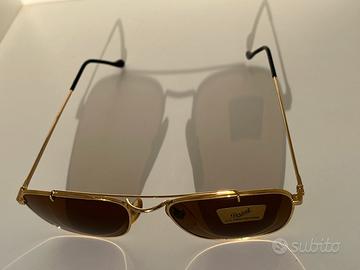 Modello vintage di grande fascino, in metallo color oro e lenti marroni sfumate.