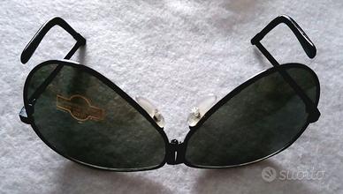 Occhiali da sole vintage pieghevoli, eleganti e pratici, con astuccio che può venire comodamente indossato nella cintura. Disponibili in montatura nera, dorata e grigia.
