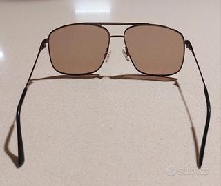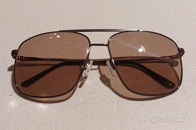 Vendo questi occhiali da sole Vintage originali, che riportano la scritta Safilo – Made in Italy, acquistati in un mercatino dell’usato (per questo non posso garantire l’autenticità del marchio). Montatura leggera e ben costruita in metallo brunito, con doppio ponte e forma aviator squadrata, tipica dello stile sportivo anni ’80/’90.