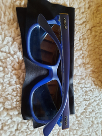 Occhiali da Sole marchio Vogue con custodia e panno originali. Colore blu interno delle bacchette floreale.