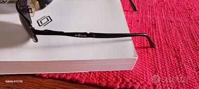 vendo occhiali da sole per uomo marca Revò mai usati ,le lenti sono in cristallo polarizzato scure tendenti al blu. misure: lunghezza 6cm larghezza 3,5