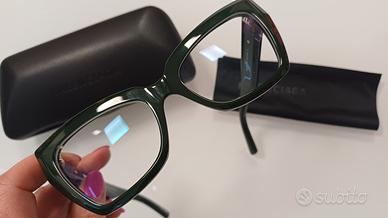 Montatura BALENCIAGA CAT EYE nuova di negozio. Perfetta e immacolata. Mai utilizzata. L acetato effetto sfaccettato rende il modello molto luminoso e gli dona personalità. Colore VERDE scuro e dettagli argentati. Completi di custodia e pannetto originali