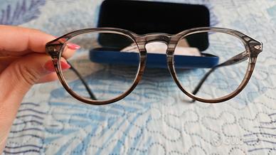 Splendida montatura per occhiali da vista firmata Cristian Leroy, modello dallo stile intellettuale e senza tempo, molto simile al classico design Panto. Colore: Marrone chiaro trasparente (effetto champagne/fumé), molto versatile e adatto a ogni carnagione. Materiale: Acetato di alta qualità, leggero e resistente. Dettagli Tecnici: Come visibile dalle aste, le misure sono 50☐18-145 (calibro lente 50mm, ponte 18mm, lunghezza aste 145mm). Condizioni: Ottime, montatura ben tenuta senza segni evidenti di usura. Incluso nel prezzo: Custodia rigida originale blu e panno in microfibra per la pulizia. Nota: Gli occhiali montano attualmente lenti graduate. Dovrai farle sostituire dal tuo ottico di fiducia con lenti adatte alla tua vista o con lenti neutre/da sole.