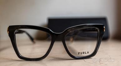 Occhiali da vista femminili Furla, acquistati online e inizialmente smarriti dal corriere, e ricevuti solo una volta che abbiamo ricevuto il paio in sostituzione, ritrovandoci quindi con un doppione inutilizzato.