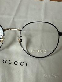 Occhiali da vista Gucci GG05810, caratterizzati da una montatura rotonda in metallo leggero con finitura nera e dettagli color oro. Design con una forma rotonda che si adatta a diversi tipi di viso e il logo Gucci è inciso in modo discreto sulle aste. Il tutto con astuccio, sacchetto anti polvere e pezza. Occhiale NUOVO, unico graffio nella parte interna dell'asta, assolutamente non visibile. Per altre info e foto contattatemi