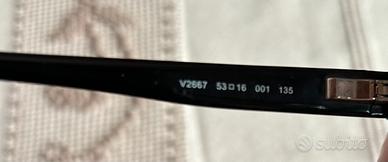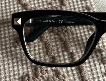 Vendo eleganti occhiali da vista originali Valentino, modello V2667. Montatura in acetato nero di alta qualità con i distintivi dettagli "Rockstud" (borchie metalliche a piramide) sugli angoli del frontale, segno inconfondibile dello stile della Maison.