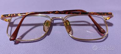 Occhiali da vista vintage, marca Valentino, montatura oro, stecche tartaruga, Modello V409, 1160, 54-19, 140. La montatura è perfetta in tutte le sue parti tranne sui naselli con logo, dove è presente un lieve colore verde causa utilizzo. Non ho contezza del grado delle lenti. Non ho l'astuccio originale, ma ne fornisco uno rigido antiurto di colore nero.