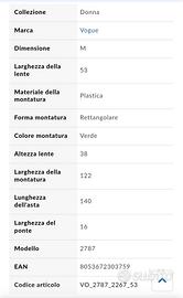 Vendo un paio di occhiali da vista per donna, colore verde, marca Vogue, originali. Custodia originale non presente.