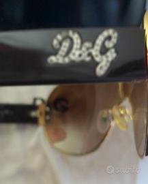Occhiali da sole originali D&G (Dolce & Gabbana), Modello: DG 6022-B Colore: Montatura in metallo dorato con lenti marroni sfumate. Dettagli: Elegante inserto metallico sul ponte superiore con micro-strass incastonati. Logo D&G sulle aste. Accessori inclusi: Set completo originale composto da custodia rigida nera con zip e sacchetto protettivo in tessuto logato (come da foto).