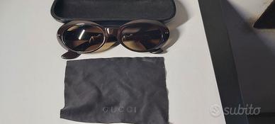 Vendo iconici occhiali da sole vintage Gucci, modello GG 2413/N/S, Modello: GG 2413/N/S Colore: Marrone scuro / Havana Misure: 52-19 (Lenti-Ponte), Asta 135mm Materiale: Optyl (leggero e resistente) Produzione: Made in Italy (originali al 100%, logo e codici visibili all'interno delle aste) Incluso: Custodia originale Gucci e panno per la pulizia (come da foto).