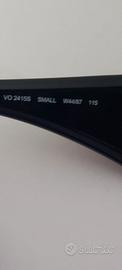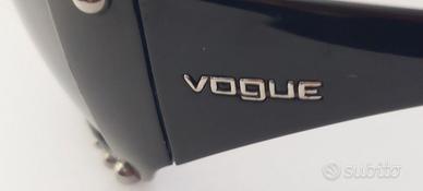 occhiali da sole a mascherina Vogue Eyewear, modello vintage originale anni 2000 (stile Y2K). DETTAGLI TECNICI: Marca: Vogue Eyewear Modello: VO 2415S SMALL Codice Colore: W44/87 (Montatura nera lucida / Lenti grigie) Dettagli: Applicazioni a borchia/cristallo sugli angoli superiori della montatura. Misura aste: 115 mm