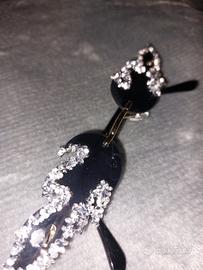 Splendidi occhiali a forma di fiamma, color nero con brillantini argento. Molto comodi e d'effetto.