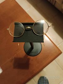 Diametro lenti cm 4, ottime condizioni, in metallo con patina dorata, astine a ricciolo