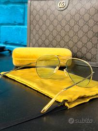 L'occhiale è in condizioni eccellenti, pari al nuovo. Venduto con il suo corredo originale completo firmato Gucci: custodia rigida in velluto, sacchetto protettivo in seta e panno in microfibra.