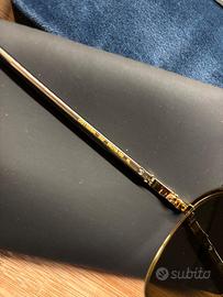 Montatura in metallo color oro, lenti marroni, astuccio come da foto nero più custodia in velluto blu. Oggetto originale