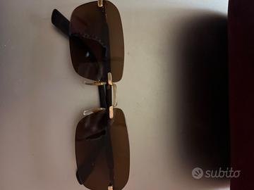 Occhiali da sole Gucci originali, modello elegante con lente scura e montatura con dettagli dorati.