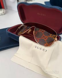Modello esclusivo con lenti marroni e logo Gucci multicolor.