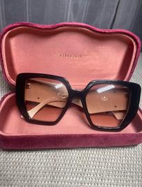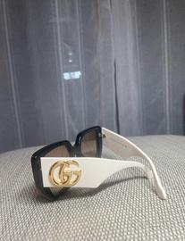 FORMA DEGLI OCCHIALI: ovali/ellittici/oversize COLORE MONTATURA: bianco, nero e oro USO: quotidiano, occhiale di lusso MODIFICHE: lente presente marrone sfumata, al suo interno sono disponibili anche le originali colore rosa da poter eventualmente montare nuovamente.