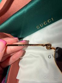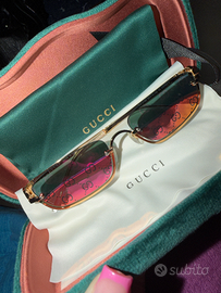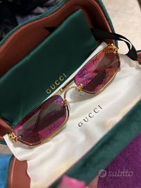 Occhiali modello Gucci uomo/donna originali GG1278S con lenti rosa e montatura oro. Completi di custodia verde e panno. Mai usati, condizioni pari al nuovo, vendo per inutilizzo. Valuto offerte serie.