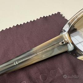 Ottime condizioni, lenti perfette, usati pochissimo. Colore verde militare e panna tartarugato. Custodia nera un po’ spelata sui bordi.