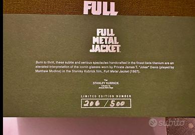 Vendo occhiali Jacques Marie Mage edizione speciale full metal jacket. Gli occhiali sono compresi di tutti gli acessori con i quali sono stati venduti. Custodia e panno ancora incartati nella plastica oroginale. Scrivere in privato per avere ulteriori foto. SOLO RITIRO A MANO - prezzo trattabile