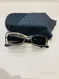 Occhiali da sole vintage da donna Max Mara, di un bel colore trasparente con aste e bordi neri e lenti scure. Ancora con fodero e pezzolina originali.