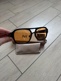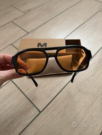 Occhiali Meller unisex lenti arancioni, stanghette nere. Nuovi, mai usati.