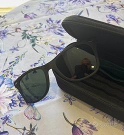 Occhiali nuovi con doppia lente solare una chiara e una scura con custodia per conservare sia occhiali che doppia lente solare.