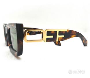 OCCHIALE DA SOLE OFF WHITE COLORE AVANA CON INSERTI ORO, ORIGINALE E NUOVO CON ETICHETTA. MATERIALE IN ACETATO PRODOTTO IN ITALIA. PREZZO DI LISTINO €350,00