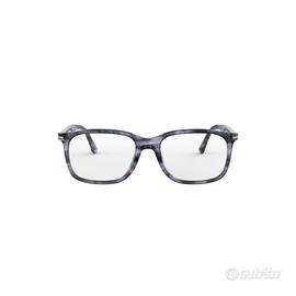 Svendo montatura nuova in celluloide Persol modello 3213v, colore azzurro - grigio, misura 55-18 145, con lenti da sole azzurre di cui la sinistra con lievissimo segno. E' una montatura da vista ancora in produzione con altri colori e che nuova costa euro 220, ideale quindi per montaggio lenti graduate in sostituzione di quelle originali da sole. L'ho comprata per adattarci le mie lenti progressive ma ho sbagliato la misura e non si adattano.