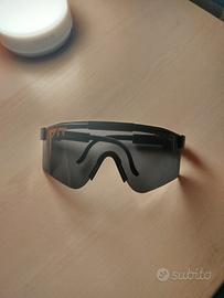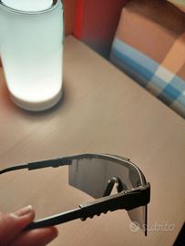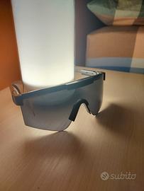 Occhiali sportivi con copertura ottimale e lente riflettente con trattamento antiappannamento.
