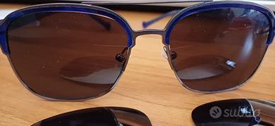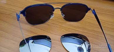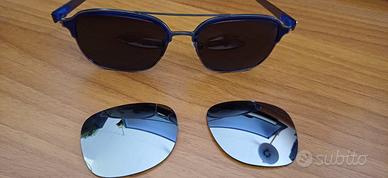 Montatura Green, metallo e plastica, occhiali lente nera polarizzato + coppia lenti specchio come in foto. Occhiale usato ma in buone condizioni, consumato solo un po sui padiglioni orecchio, plastica blu in foto, non visibile quando vengono indossati. Prezzo simbolico € 13,00 - Visto/piaciuto