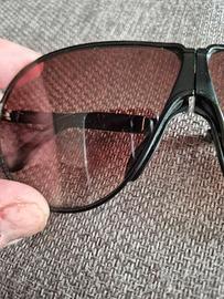 iconici montatura satinata nera con scritta cancellata ma ben presente sulle lenti a testimoniare l originalità. spedisco in cofanetto anche se non originale