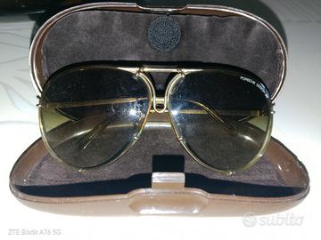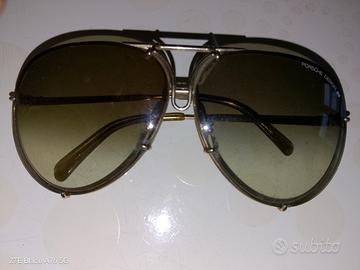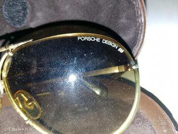 Occhiali vintage porsche design nel colore marrone sfumato, gli occhiali sono in perfette condizioni ,portano solo una leggera scheggiatura nella lente sinistra, gli occhiali sono da collezione e si trovano su siti di negozi online che oscillano tra i 250 e i 500 euro,gli occhiali portano anche il numero seriale nella bacchetta interna sinistra