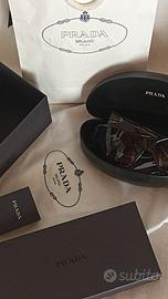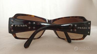 Occhiali da sole Prada, polarizzati Multi Star marroni con stelle metalliche argento ai lati di entrambe le aste. Nuovi, confezione regalo completi di custodia, panno pulisci occhiali, sacchetto e busta. ( vedi foto)