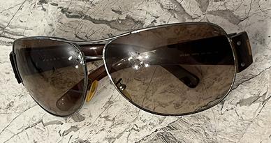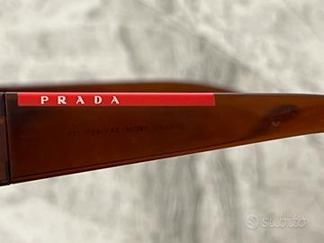 Occhiali PRADA da sole CONDIZIONI=abbastanza buone presenta qualche piccolo segno di usure come da foto GENERE=Uomo COLORE LENTE=Marrone COLORE MONTATURA=Gunmetal COLORE FRONTALE=Canna di fucile MISURE= • (Asta): La lunghezza totale delle stanghette è di 125 mm. • (Ponte) La distanza tra le due lenti sopra il naso è di 14 mm. •(Calibro): La larghezza di una singola lente è di 69 mm. È una misura superiore alla media tipica dei modelli a mascherina o molto avvolgenti. SPEDIZIONE SOLO CON INFOPOST