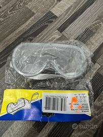 Vendo occhiali protettivi trasparenti nuovi, ancora nella confezione originale. Modello leggero con elastico regolabile e certificazione CE.