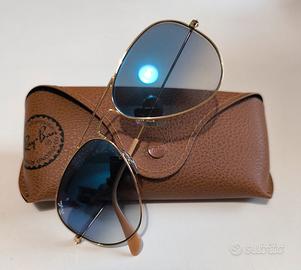 Occhiale da sole Ray Ban Aviator 3025 ,Cal 55 ,lenti azzurrate sfumate con flashatura a specchio, montatura colore oro,nuovo mai usato. prezzo occasione non trattabile!