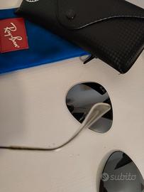 Ray Ban Aviator Large Metal misura 004/51 Dotati di custodia morbida e rigida e doppie lenti : - Sfumate grigio - Specchio occhiali in metallo robusti tra i più indossati al mondo e da sempre alla moda. Furono inizialmente ideati per gli aviatori dell'esercito americano nel 1937. Presenta I segni del tempo ma conservati in modo maniacale (primi anni 2000). Ottimi per gli amanti del genere.
