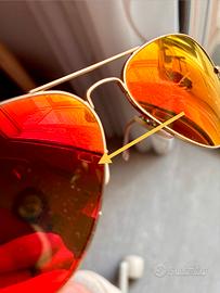 Logo Ray Ban in bianco su angolo lente destra.