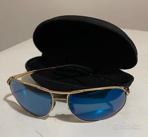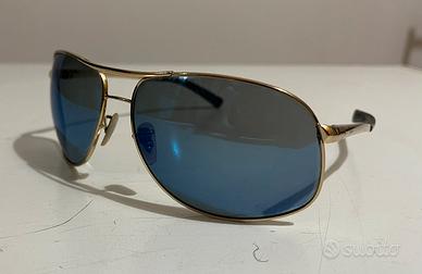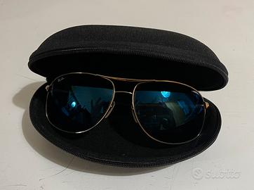 Occhiali da sole marca RAY-BAN con montatura color oro e lente blu, buone condizioni molto eleganti e sportivi