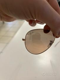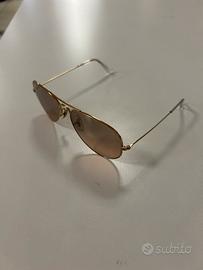 Vendo occhiali da sole rayban ray-ban da donna. Mai usati. Senza custodia originale perché la usa su un’altro paio. Montatura oro con lenti oro/rosa