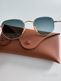 Occhiali da sole Ray-ban Hexagonal ORB3548N colore lenti: blue gradient grey. Colore montatura: oro