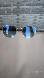vendo occhiali esagonali come nuovi, lenti azzurro cobalto montatura colore oro.